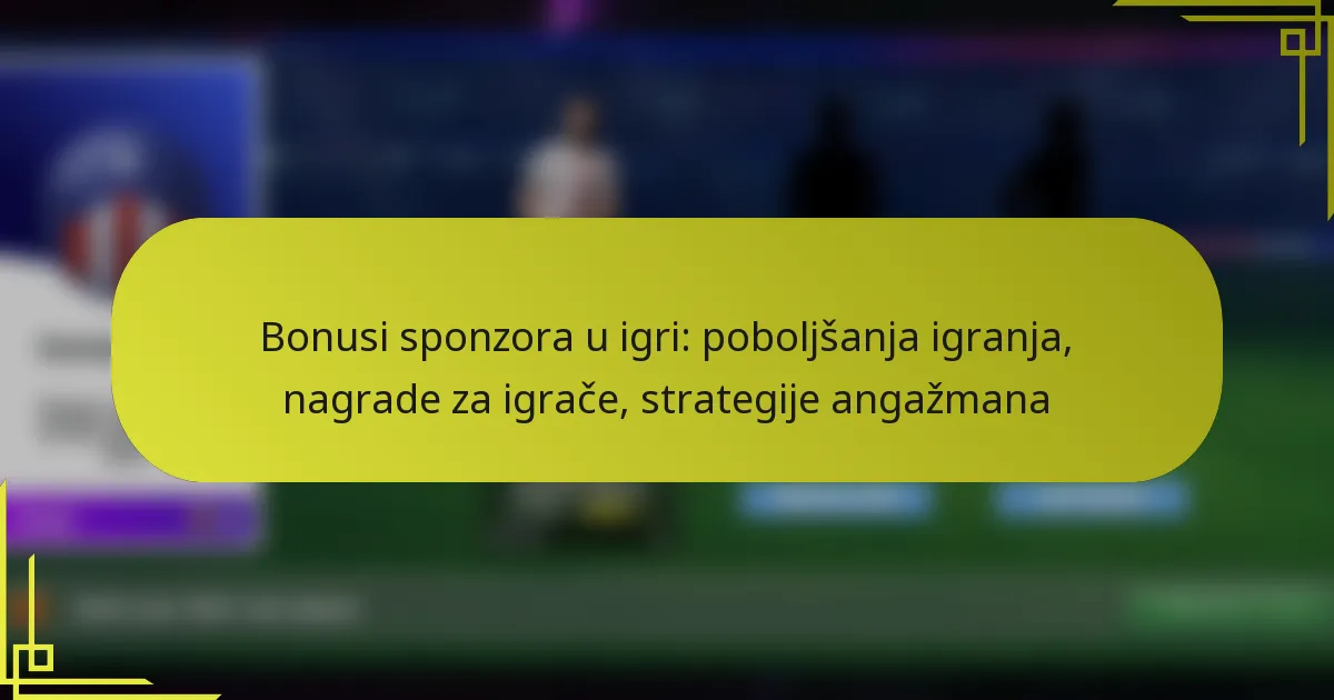 Bonusi sponzora unutar igre poboljšavaju gameplay pružajući igračima nagrade za angažman sa sponzorima. Učinkovita implementacija zahtijeva strateški pristup koji uravnotežuje užitak igrača s vidljivošću sponzora, osiguravajući da obje strane imaju koristi od suradnje.